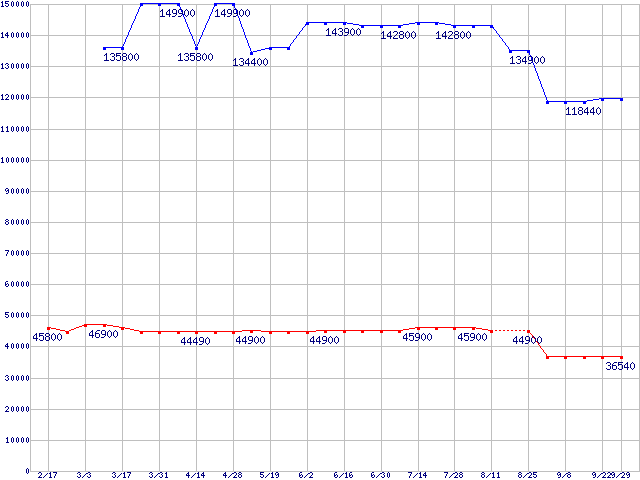 Socket 940 (FSB 1000MHz,L2 1MBx2,Dual Core)の最安値推移
