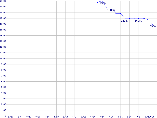 | Socket 478 (FC-PGA2,FSB 800MHz,L2 512KB,Hyper-Threading,Northwood)の最安値推移 | | | (2006年2月17日~2006年9月29日) |