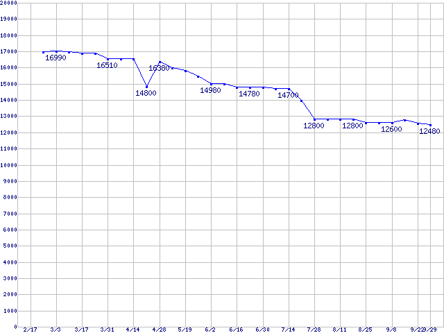 | LGA 775 (FSB 533MHz,L2 1MB×2,Dual Core,EM64T対応)の最安値推移 | | | (2006年2月17日~2006年9月29日) |
