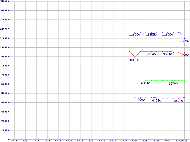 LGA 771(FSB 1333MHz,Dual Core,L2 4MB,TDP40W)の最安値推移