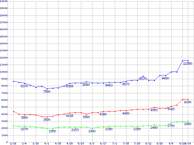 PC2-6400(DDR2-800) DDR2 SDRAM DIMMの最安値推移
