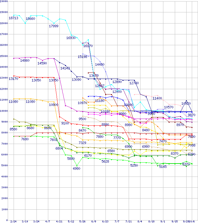 | CPU主要製品(最安値1万円未満)の最安値推移 | | | (2006年2月24日~2006年10月6日) |
