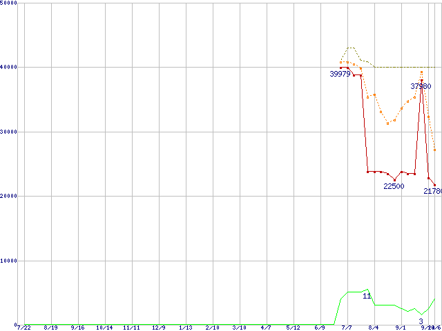 | Athlon 64 X2 4000+ (2.0GHz,L2 1MB×2)の価格推移 | | | (2005年7月22日~2006年10月6日) |
