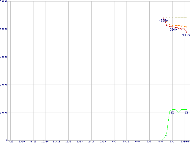 | Core 2 Duo E6600 (2.40GHz,L2 4MB)の価格推移 | | | (2005年7月22日~2006年10月6日) |