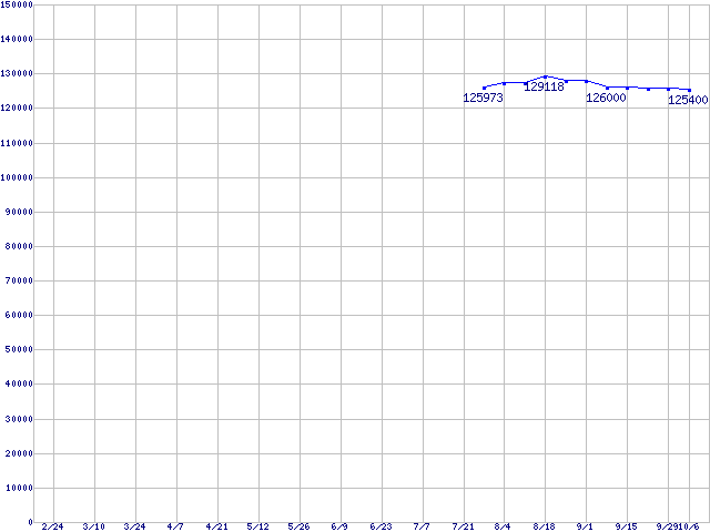 | LGA 775 (FSB 1066MHz,L2 4MB,Dual Core,EM64T対応)の最安値推移 | | | (2006年2月24日~2006年10月6日) |