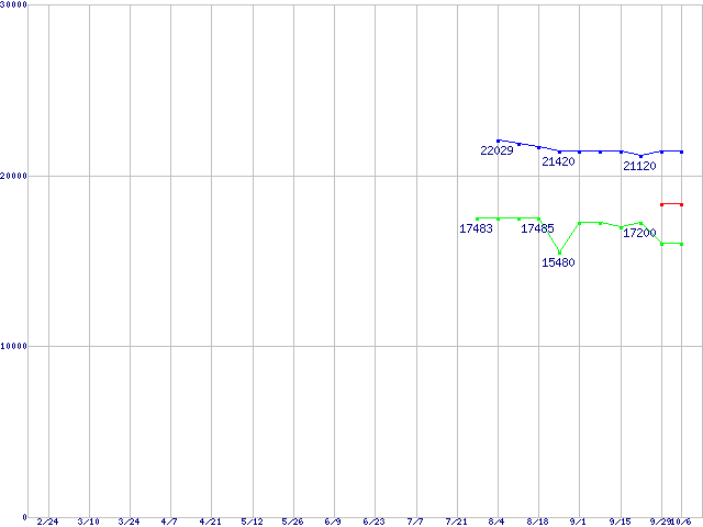 | LGA 775 (FSB 800MHz,L2 2MB×2,Dual Core,EM64T対応)の最安値推移 | | | (2006年2月24日~2006年10月6日) |