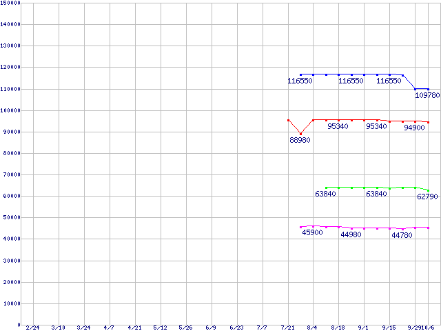 LGA 771(FSB 1333MHz,Dual Core,L2 4MB,TDP40W)の最安値推移