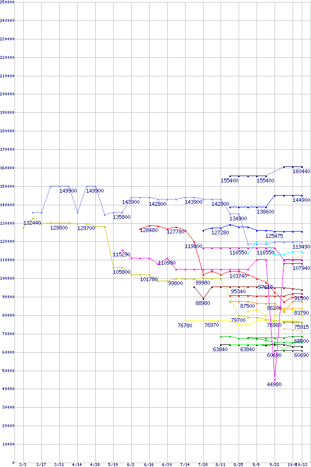 CPU主要製品(最安値6万円以上)の最安値推移
