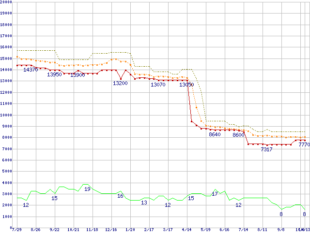 | Celeron D 351 (3.20GHz)の価格推移 | | | (2005年7月29日~2006年10月13日) |