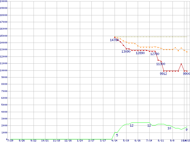 | Celeron M 420 (1.6GHz)の価格推移 | | | (2005年7月29日~2006年10月13日) |