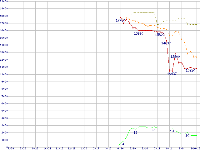 | Celeron M 430 (1.73GHz)の価格推移 | | | (2005年7月29日~2006年10月13日) |