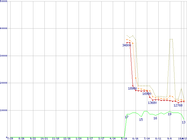 | Athlon 64 3800+ (2.4GHz,L2 512KB)の価格推移 | | | (2005年7月29日~2006年10月13日) |