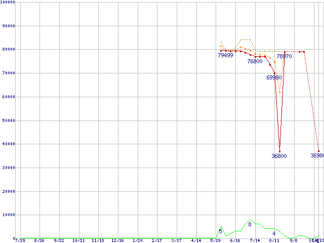 | Athlon 64 X2 4800+ (2.4GHz,L2 1MB×2)の価格推移 | | | (2005年7月29日~2006年10月13日) |