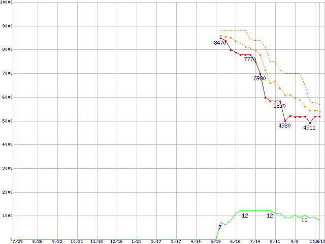 | Sempron 2800+ (1.6GHz,L2 128KB)の価格推移 | | | (2005年7月29日~2006年10月13日) |