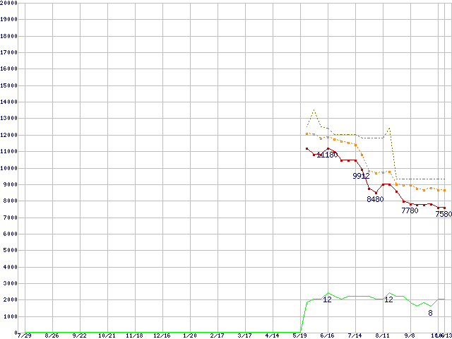 | Sempron 3400+ (1.8GHz,L2 256KB)の価格推移 | | | (2005年7月29日~2006年10月13日) |