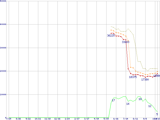 | Athlon 64 X2 3800+ (2.0GHz,L2 512KB×2)の価格推移 | | | (2005年7月29日~2006年10月13日) |