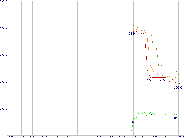 | Athlon 64 X2 3800+ (2.0GHz,L2 512KB×2,TDP65W)の価格推移 | | | (2005年7月29日~2006年10月13日) |