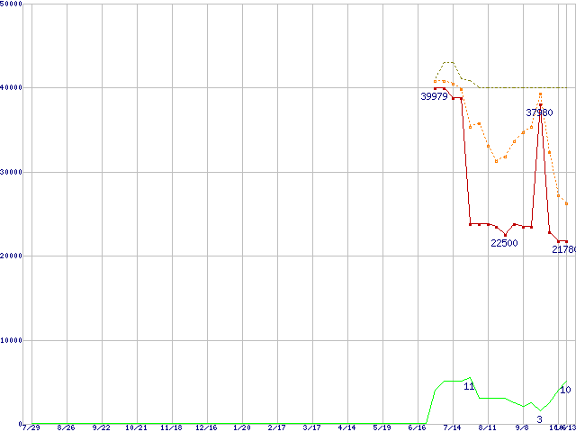 | Athlon 64 X2 4000+ (2.0GHz,L2 1MB×2)の価格推移 | | | (2005年7月29日~2006年10月13日) |