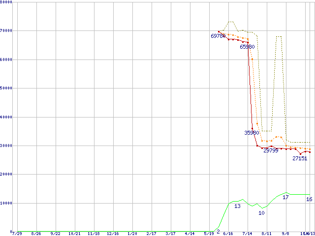 | Athlon 64 X2 4600+ (2.4GHz,L2 512KB×2)の価格推移 | | | (2005年7月29日~2006年10月13日) |