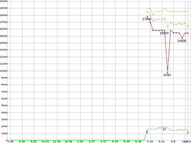 | Sempron 3400+ (1.8GHz,L2 256KB,TDP35W)の価格推移 | | | (2005年7月29日~2006年10月13日) |
