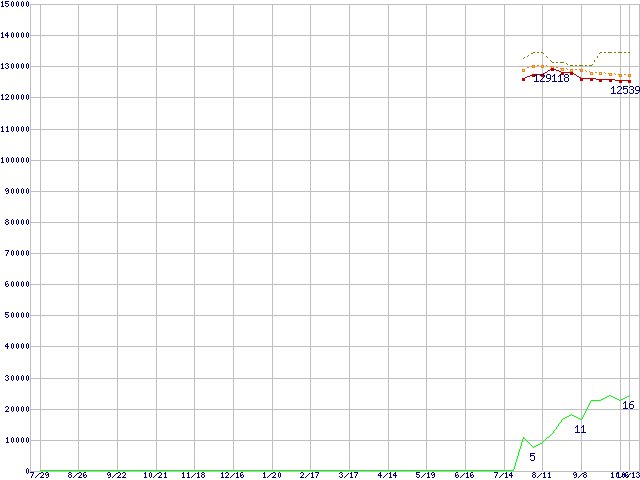| Core 2 Extreme X6800 (2.93GHz)の価格推移 | | | (2005年7月29日~2006年10月13日) |