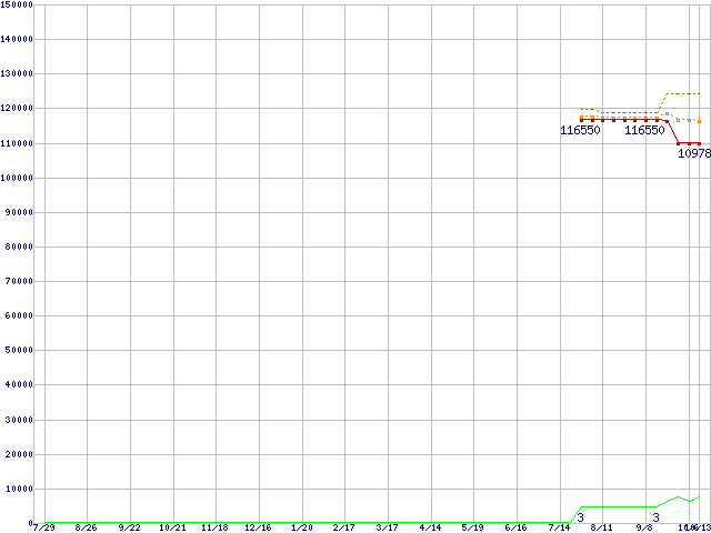 | Xeon 5160(3GHz)の価格推移 | | | (2005年7月29日~2006年10月13日) |