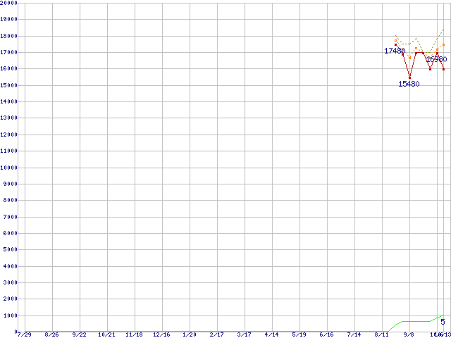 | Athlon 64 X2 3600+ (2.0GHz,L2 256KB×2,TDP65W)の価格推移 | | | (2005年7月29日~2006年10月13日) |