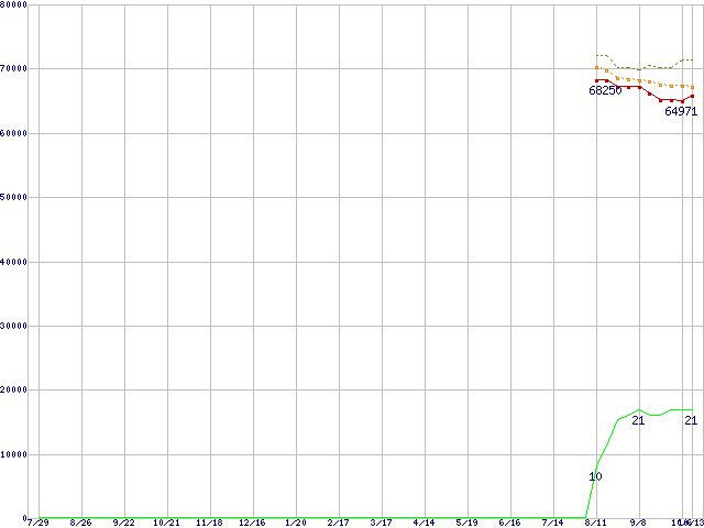 | Core 2 Duo E6700 (2.66GHz,L2 4MB)の価格推移 | | | (2005年7月29日~2006年10月13日) |