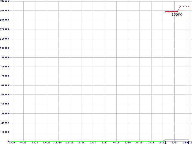 | Opteron 1220SE (2.8GHz) バルクの価格推移 | | | (2005年7月29日~2006年10月13日) |