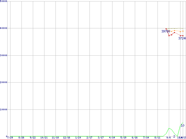 | Core 2 Duo T7200 (2.00GHz,L2 4MB)の価格推移 | | | (2005年7月29日~2006年10月13日) |