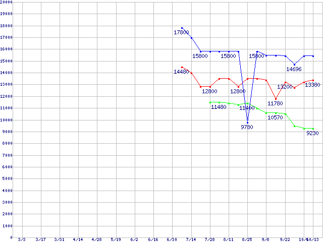 Core Duo向けSocket 478 (FSB 667MHz,L2 2MB,Dual Core,VT対応)の最安値推移