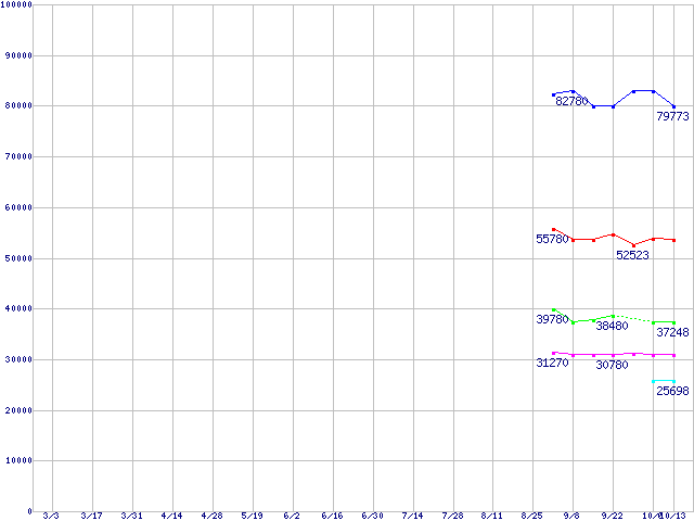 | Core Duo向けSocket 478 (FSB 667MHz,Dual Core,EM64T対応)の最安値推移 | | | (2006年3月3日~2006年10月13日) |