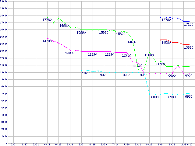 Core Duo向けSocket 478 (FSB 533MHz,L2 1MB)の最安値推移