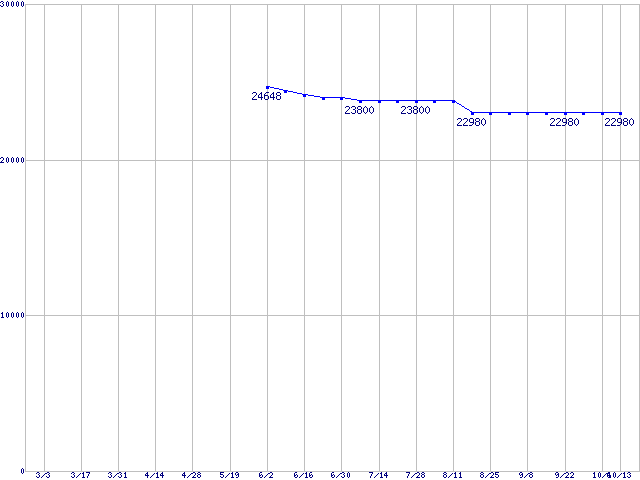 | Core Duo向けSocket 478 (FSB 667MHz,L2 2MB,Dual Core)の最安値推移 | | | (2006年3月3日~2006年10月13日) |