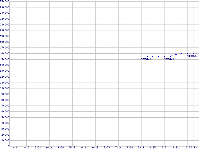 | Socket F (FSB 1000MHz,L2 1MBx2,Dual Core,TDP 120W)の最安値推移 | | | (2006年3月3日~2006年10月13日) |