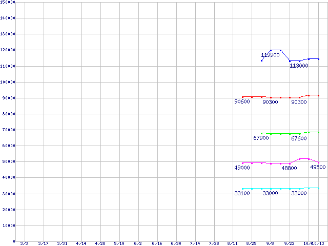 | Socket F (FSB 1000MHz,L2 1MBx2,Dual Core,TDP 95W)の最安値推移 | | | (2006年3月3日~2006年10月13日) |