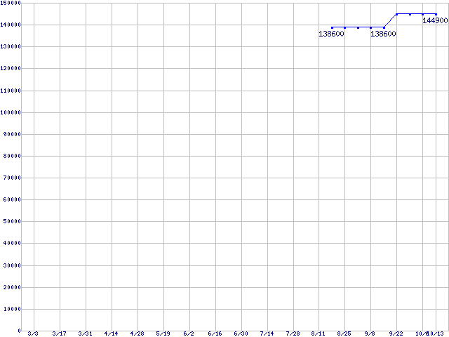 | Socket AM2 (FSB 1000MHz,L2 1MBx2,Dual Core,TDP 125W)の最安値推移 | | | (2006年3月3日~2006年10月13日) |