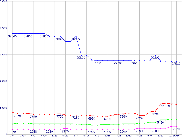 メモリ主要製品の最安値推移
