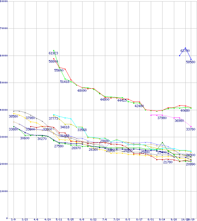 | HDD 500GB以上の最安値推移 | | | (2006年3月9日~2006年10月19日) |