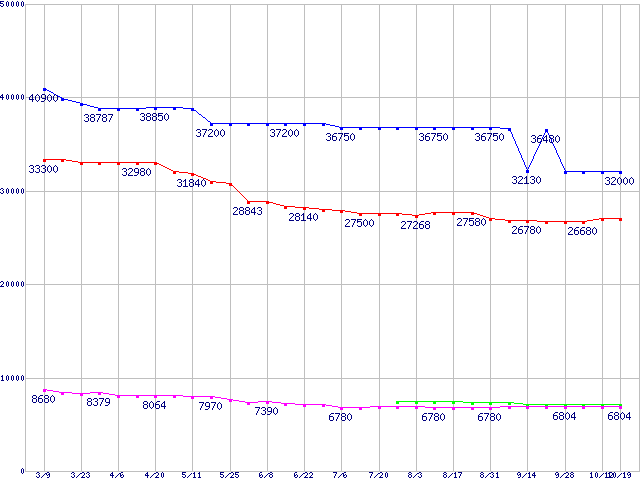 HDD 160~200GB未満の最安値推移