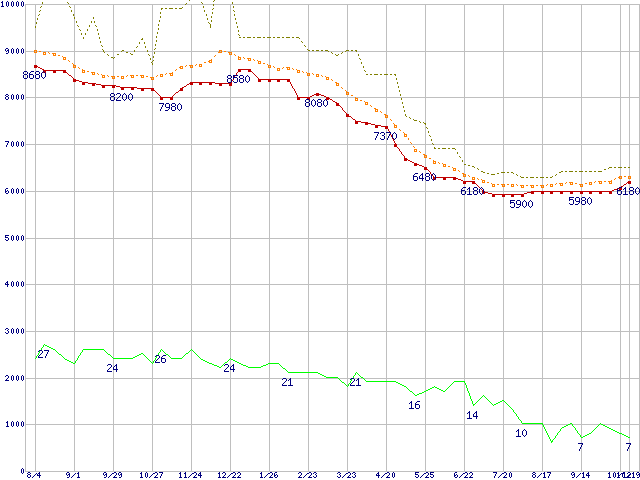 | HDT722516DLAT80 (160GB,8MB)の価格推移 | | | (2005年8月4日~2006年10月19日) |