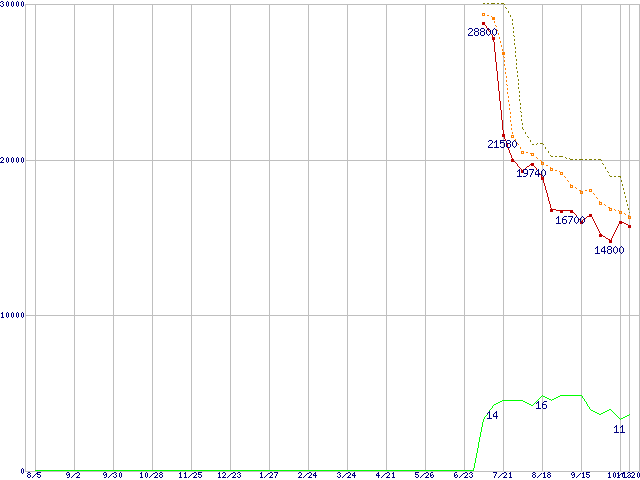 | Athlon 64 3500+ (2.2GHz,L2 512KB,TDP35W)の価格推移 | | | (2005年8月5日~2006年10月20日) |
