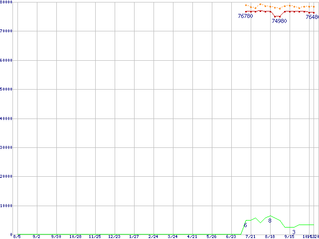 | Core Duo T2700 (2.33GHz)の価格推移 | | | (2005年8月5日~2006年10月20日) |