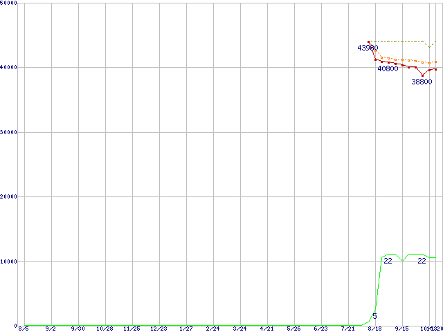 | Core 2 Duo E6600 (2.40GHz,L2 4MB)の価格推移 | | | (2005年8月5日~2006年10月20日) |