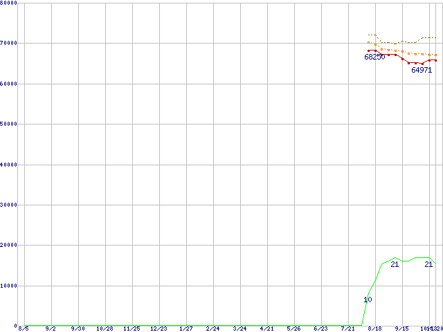 | Core 2 Duo E6700 (2.66GHz,L2 4MB)の価格推移 | | | (2005年8月5日~2006年10月20日) |
