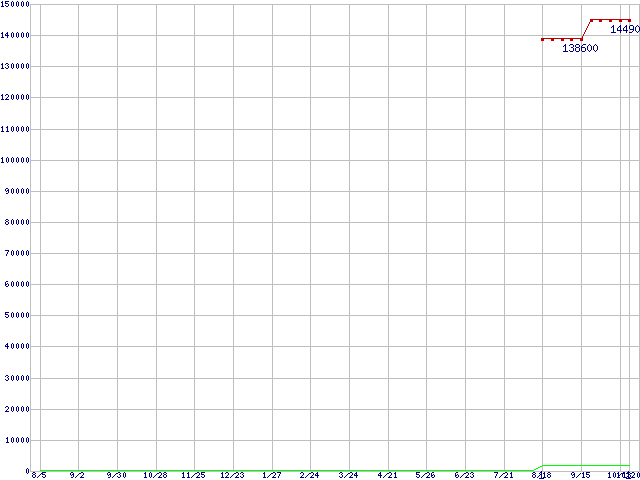 | Opteron 1220SE (2.8GHz) バルクの価格推移 | | | (2005年8月5日~2006年10月20日) |