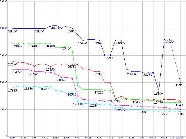| Socket 939 (FSB 1000MHz)の最安値推移 | | | (2006年3月10日~2006年10月20日) |