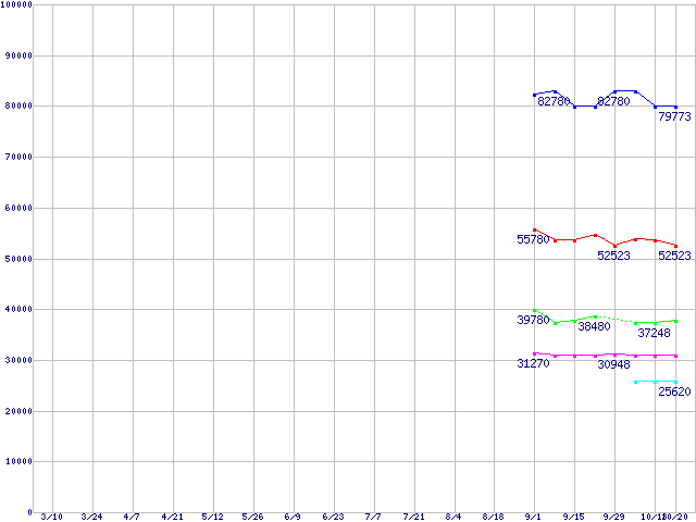 | Core Duo向けSocket 478 (FSB 667MHz,Dual Core,EM64T対応)の最安値推移 | | | (2006年3月10日~2006年10月20日) |