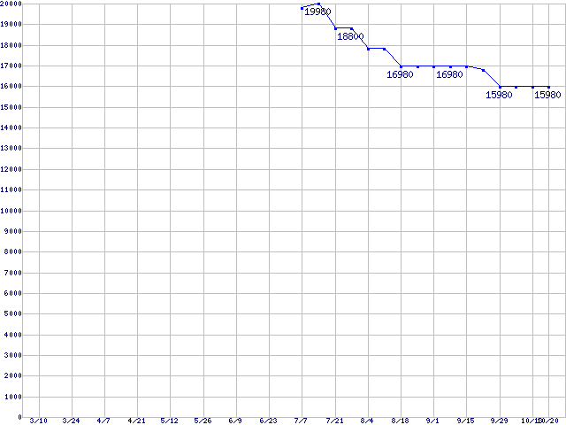 | Socket 478 (FC-PGA2,FSB 800MHz,L2 512KB,Hyper-Threading,Northwood)の最安値推移 | | | (2006年3月10日~2006年10月20日) |
