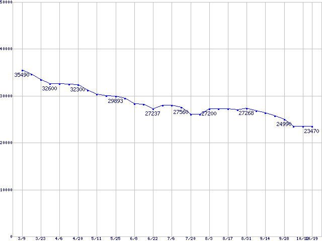 | MaXLine Pro 500 (7200rpm,16MB,Ultra ATA/133)の最安値推移 | | | (2006年3月9日~2006年10月19日) |